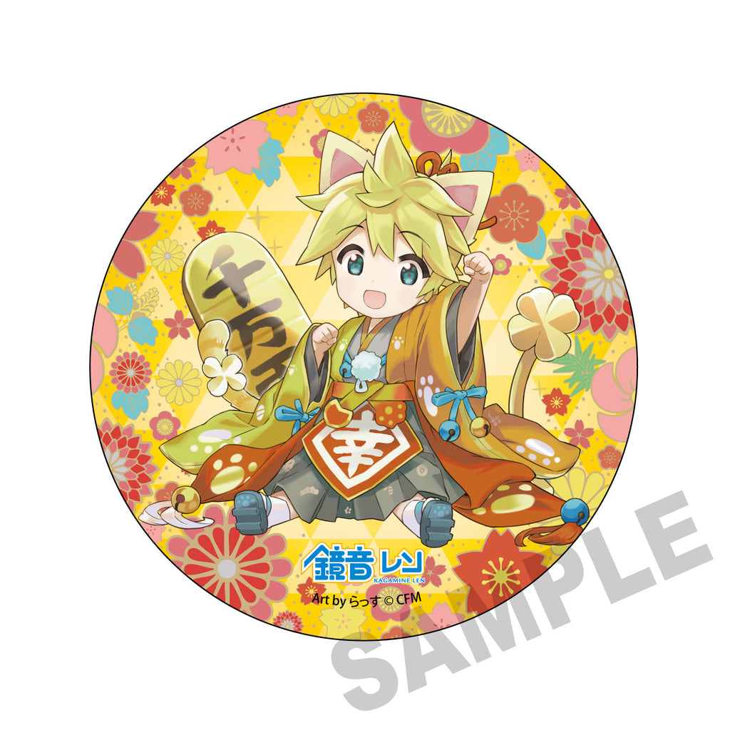(Goods - Badge) Hatsune Miku x Lucky Cat Mega Tin Badge Stand Kagamine Len Art by Rassu