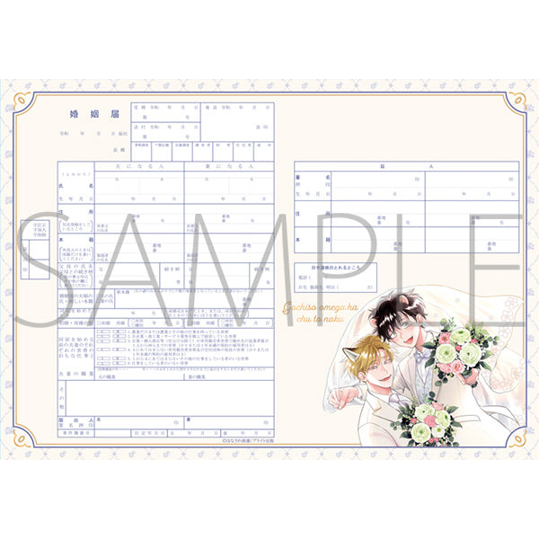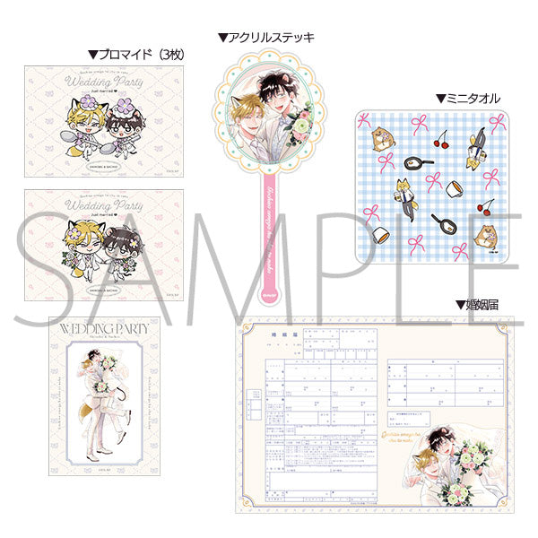 A wedding set from "The Foxy Mouse's Romance (Gochisou Ω wa Chuu to Naku)" is here! The set includes the following: an acrylic stick, bromides (x3), a "marriage certificate" and a mini towel. ♪